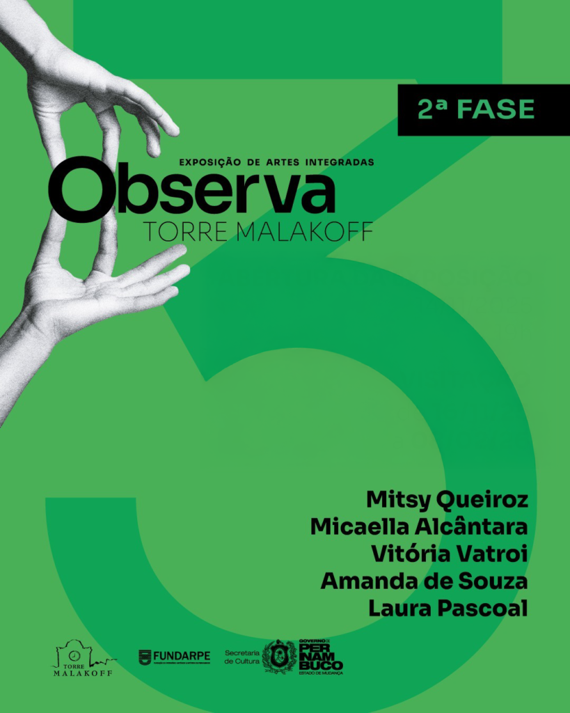 A Torre Malakoff, no Bairro do Recife, entra uma nova etapa da exposição Observa 3, com cinco artistas selecionadas por meio do edital de ocupação de pautas promovido pela Fundação do Patrimônio Histórico e Artístico de Pernambuco (Fundarpe). A mostra, gratuita, permanecerá em cartaz até 8 de fevereiro de 2026.